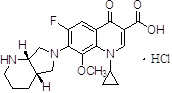 本品主要成份為鹽酸莫西沙星,其化學名稱:1-環(huán)丙基-7-{S,S-2,8-重氮-二環(huán)[4.3.0]壬-8-基}-6-氟-8-甲氧-1,4-二氫-4-氧-3-喹啉羧酸鹽酸鹽