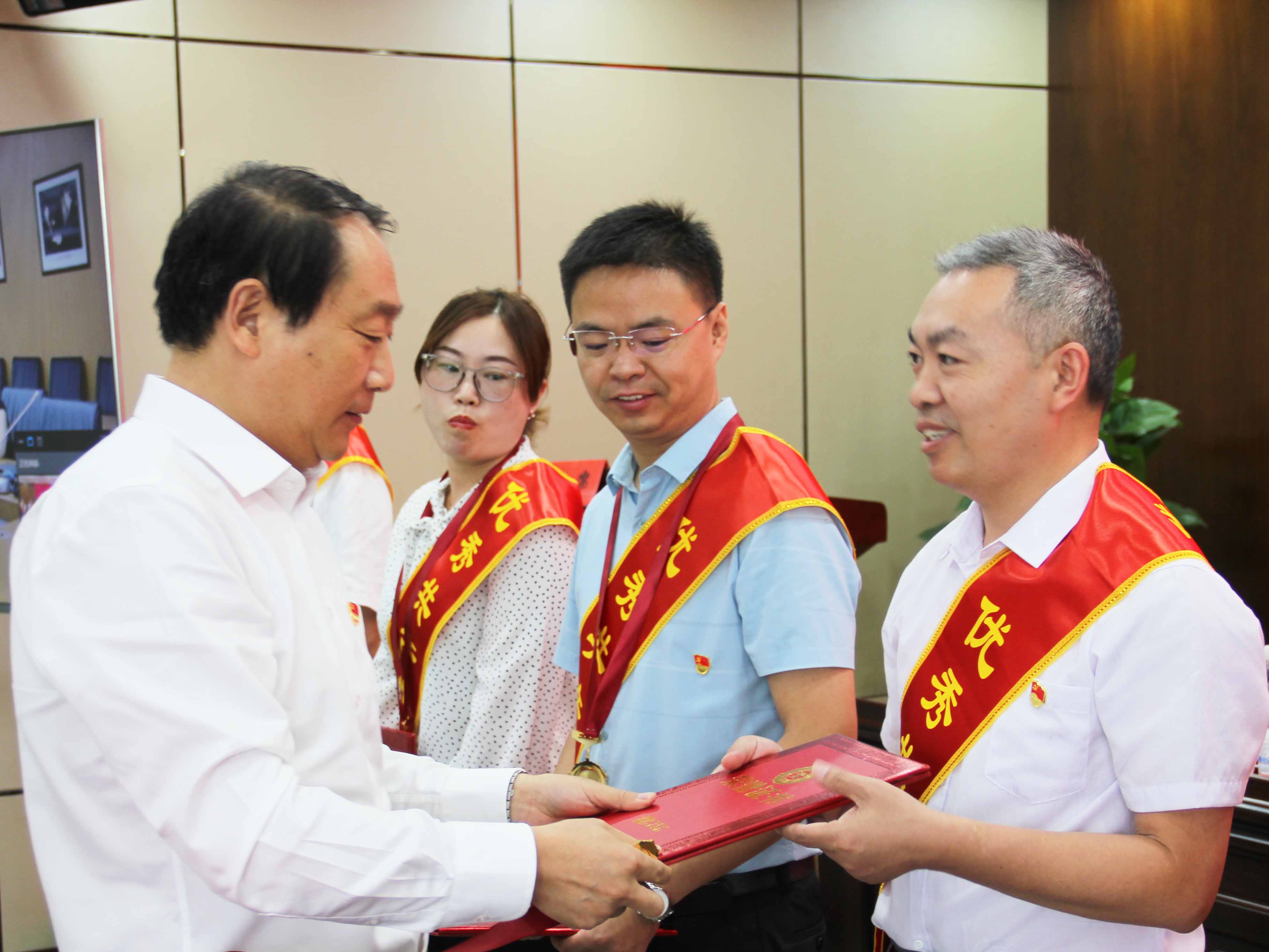 (夏總為優(yōu)秀黨員頒發(fā)證書和獎(jiǎng)牌)