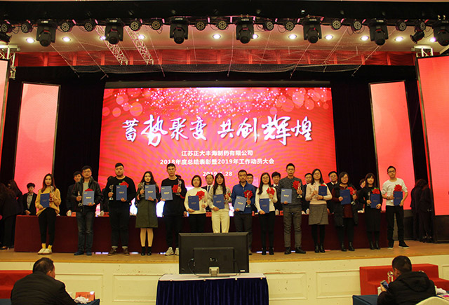 首先,夏文余總經理代表公司經營班子作《2018年工作總結暨2019年工作任務報告》。夏總對過去一年工作進行了基本評價,并著重闡述了2018年工作主要特點和寶貴經驗,同時明確了2019年度的發展思路,并就營銷、研發、項目、人力資源、生產、質量、財務等重點工作進行了全面部署。從宏觀的角度對公司2019年工作給予了更高的期許,讓在場的所有豐海人倍感鼓舞。夏文余指出,本次大會既是2019年工作的布置會,更是推動公司實現新一輪跨越式發展的鼓勁會。2019年,公司將一手抓好藥品生產經營,挖潛增效,確保企業經濟健康持續穩定運行;一手抓好特醫產品事業拓展,為企業實現跨越式發展奠定基礎。