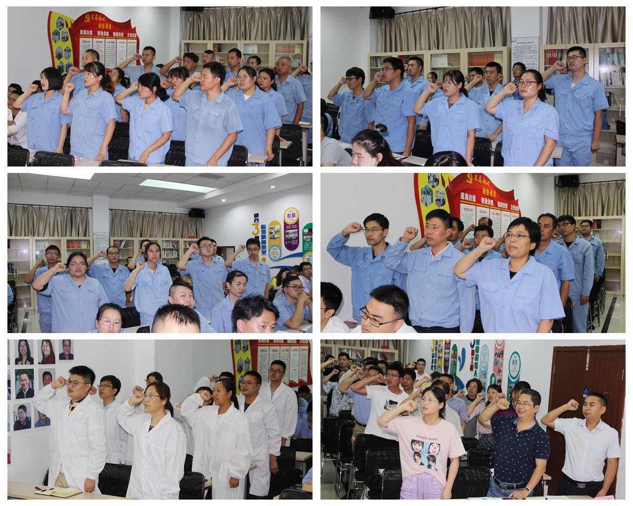 會上,質量部經理徐曙東首先通報了此次質量月活動的計劃和方案。隨后,各車間部門交流本單位質量月活動總體計劃;制劑一二三車間、制劑四車間、原料一二車間、特醫車間、檢測中心、管理人員等方陣相繼進行了質量宣誓,參加宣誓儀式的員工代表高舉右手莊嚴宣誓,一句句鏗鏘有力的話語,深深地觸動了現場的每一位豐海人。